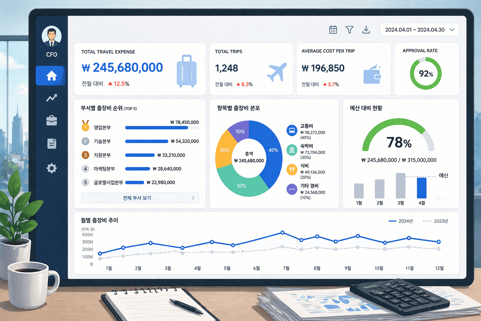 CFO: 대시보드 접속 → 현재 출장비 총액 확인 (10초)