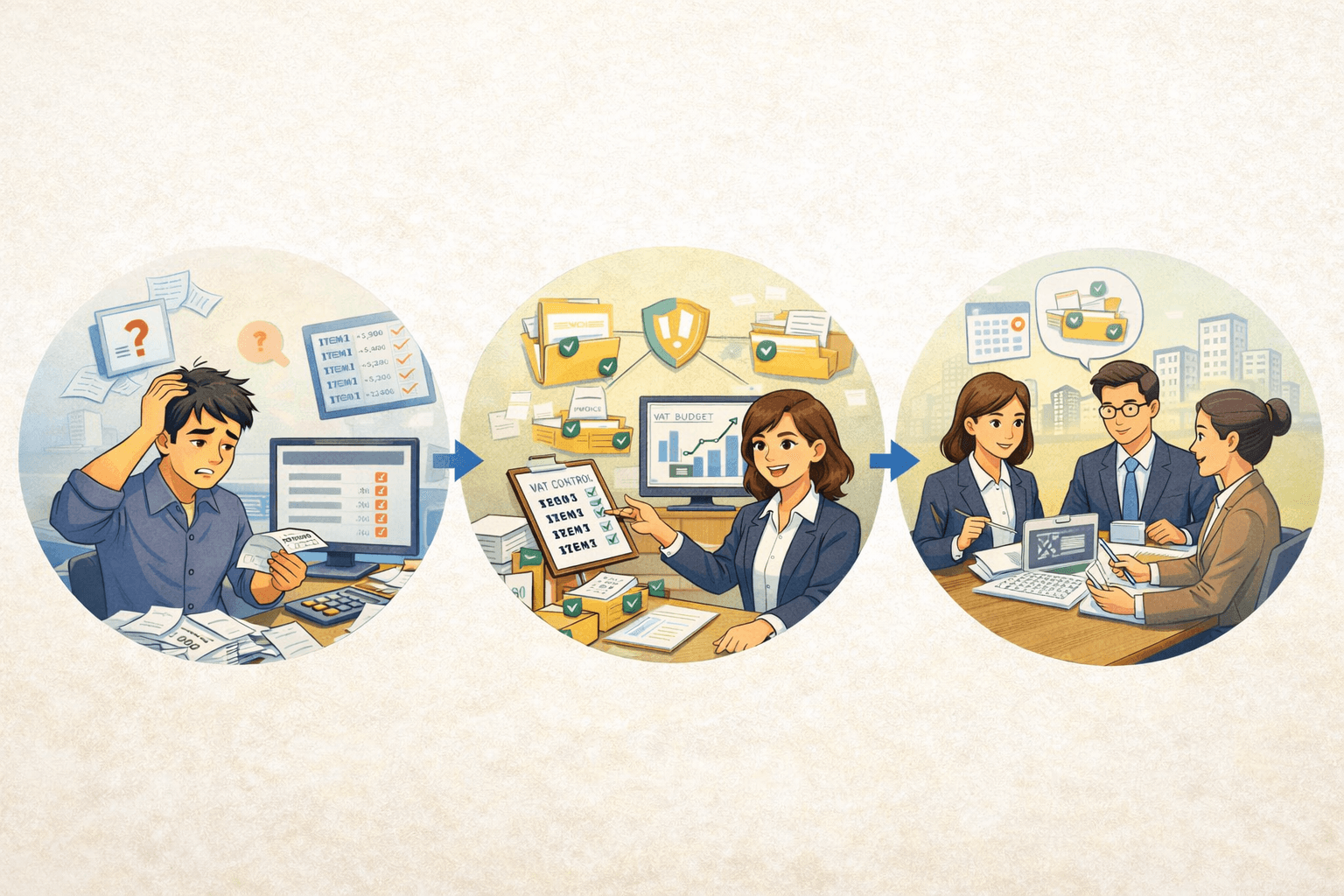 하지만 구조가 바뀌면 "세무 관리자"가 됩니다. 사후 수집은 시스템이 처리합니다. 구매 데이터가 중앙화되고, 증빙이 체계적으로 관리되며, 거래처 정보가 일원화됩니다. 경리팀은 전략적 질문에 집중합니다. "어느 거래처에서 환급이 많은가?" "어떤 카테고리 지출을 조정할 것인가?" "어떻게 세금 부담을 최적화할 것인가?"