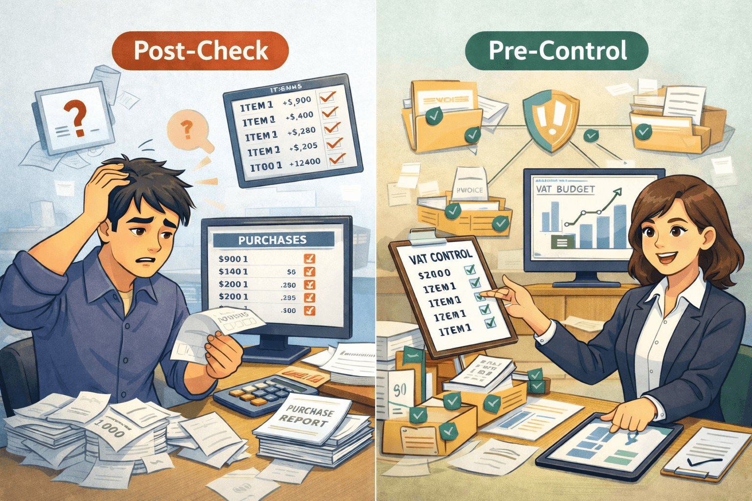 구매 기준이 없습니다. 누가 어디서 무엇을 사도 됩니다. 세금계산서 발행 여부도 확인 안 합니다. 분기 말에 경리팀이 확인합니다. "이건 환급 못 받아요." 그때는 늦었습니다. 이미 구매했습니다.