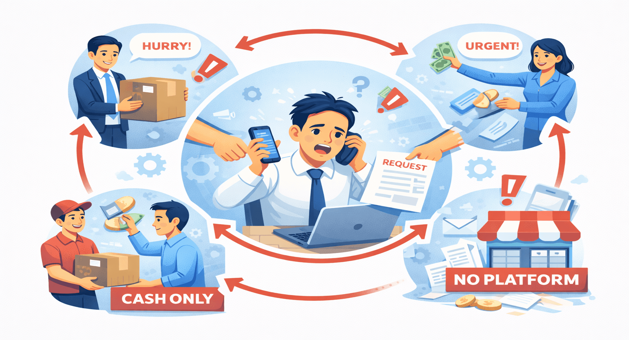 넷째, 담당자는 전략 업무를 못 합니다. 하루 종일 사후 수습만. 세금계산서 받고, 증빙 모으고, 엑셀 취합하고. 정작 "어떻게 하면 더 싸게, 더 효율적으로 조달할 수 있을까"를 고민할 시간이 없어요. 담당자는 관리자에서 실무자로, 실무자에서 정리자로 내려갑니다.